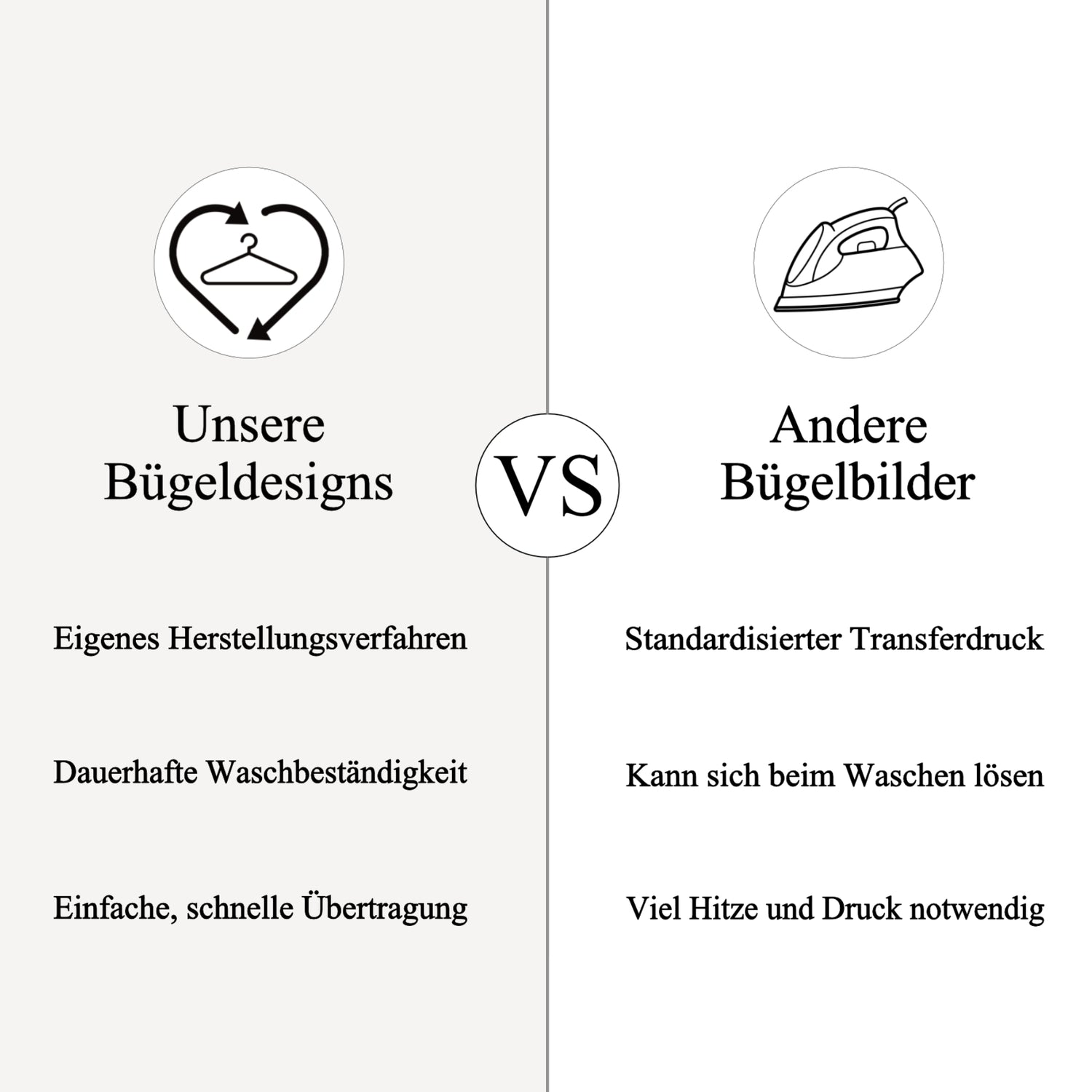 Unsere Produkte bieten eine einzigartige Waschbeständigkeit dank eines eigens entwickelten Herstellungsverfahrens, während andere Bügelbilder meist standardisierten Transferdruck nutzen und sich beim Waschen lösen können.