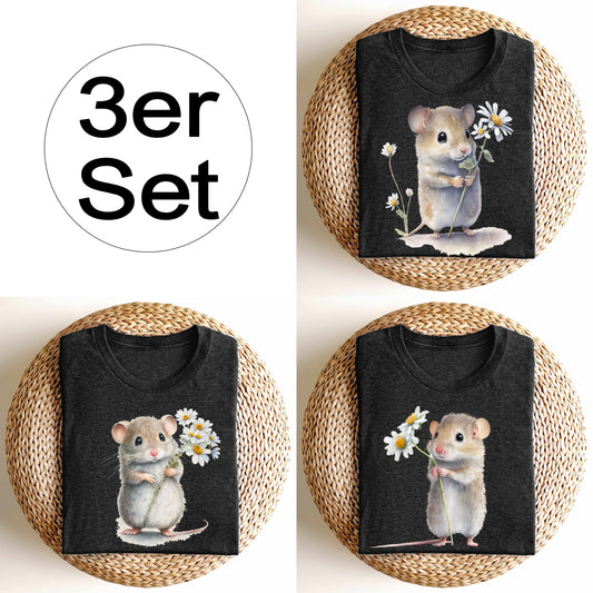 3 Bügelbilder: Maus mit Blume inkl. Anleitung