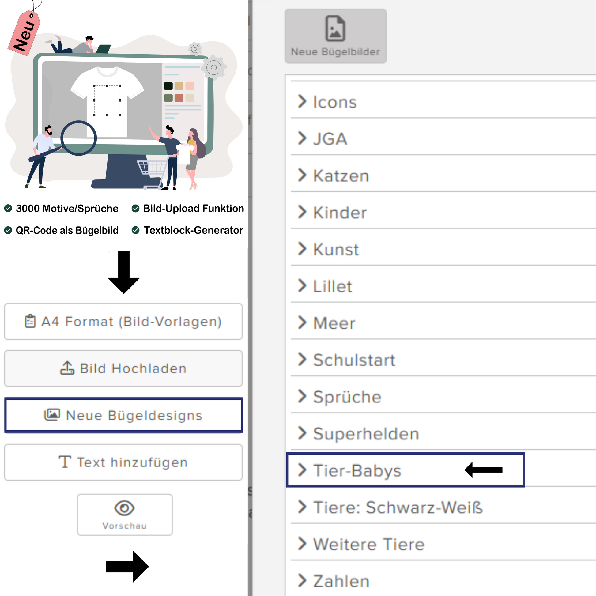 Ja, du kannst die Bügelbilder später mit einer Schere einzeln ausschneiden. Wenn du die Motive ohne Hintergrund (also transparent) im Bügelbild-Planer platzierst, bleibt nur das Motiv auf deinem Stoff zurück, sonst nichts.